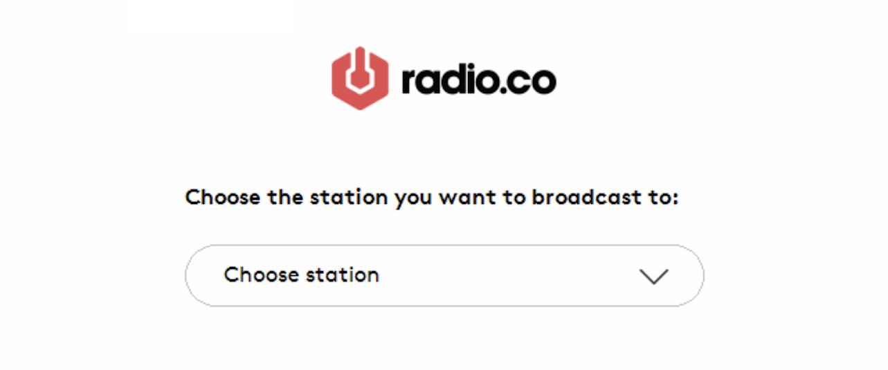 Once that's done, the broadcaster will ask you to select which station you want to broadcast live to. If you only have a single station with Radio.co, just that one station will display. However, if you have multiple stations, then you'll have to select which one you'd like to control.