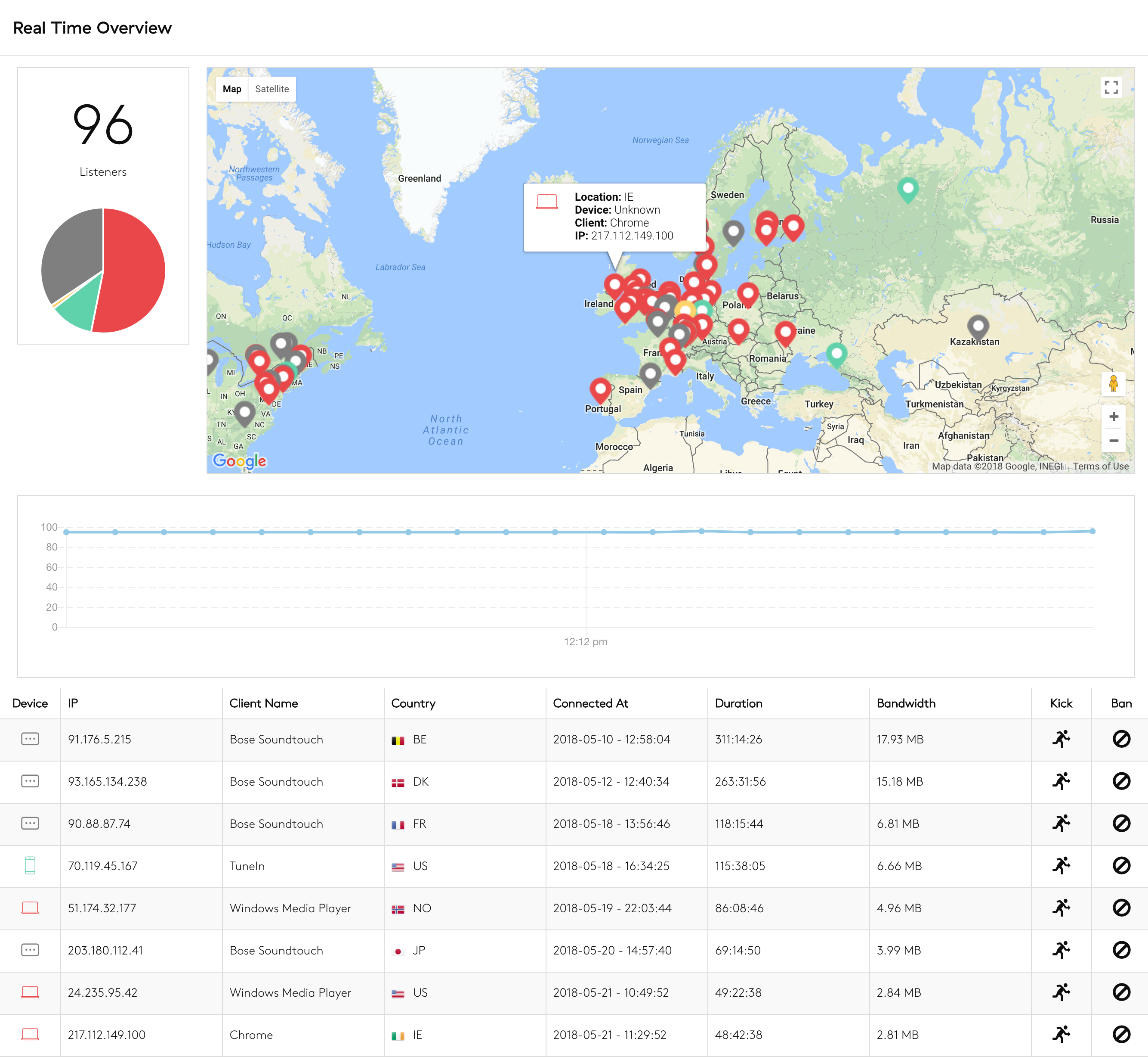 You can also track your listenership easily in real time, with the ability to view a map of your listeners.