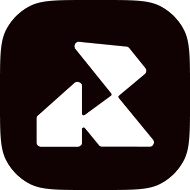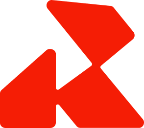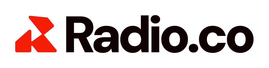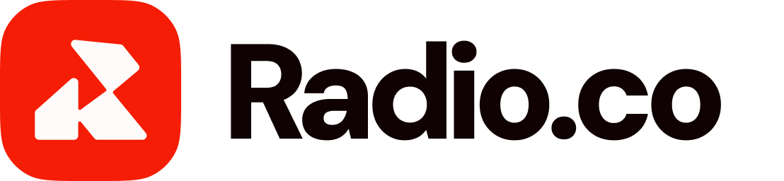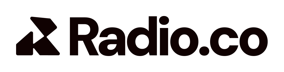 The Radio.co brand is embodied in its logo. A soft-edged abstract "R" mark forming an intersecting play button in the negative space, representing on-air, broadcasting and live content.
