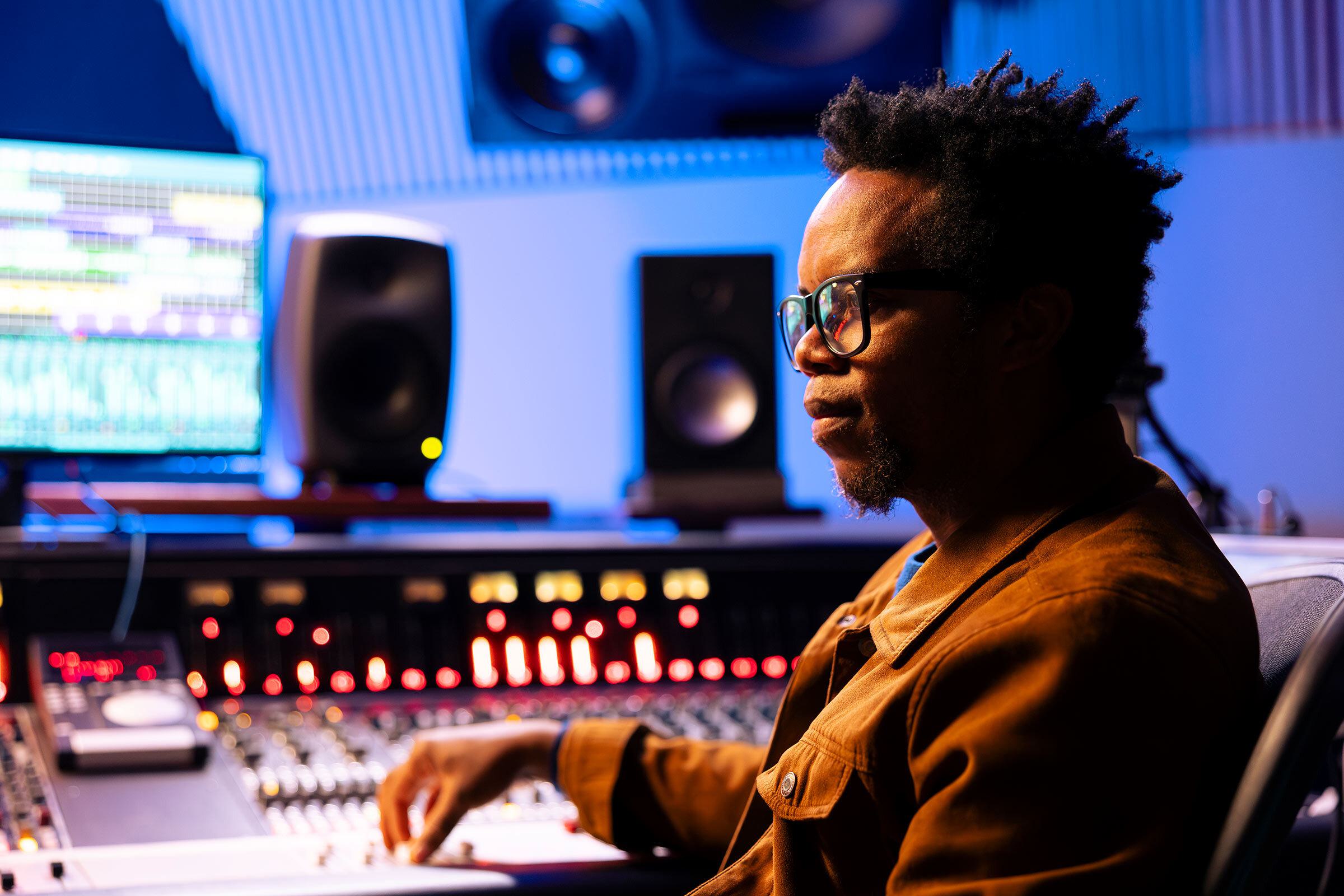 Mixer console – Controls audio levels and sound quality.